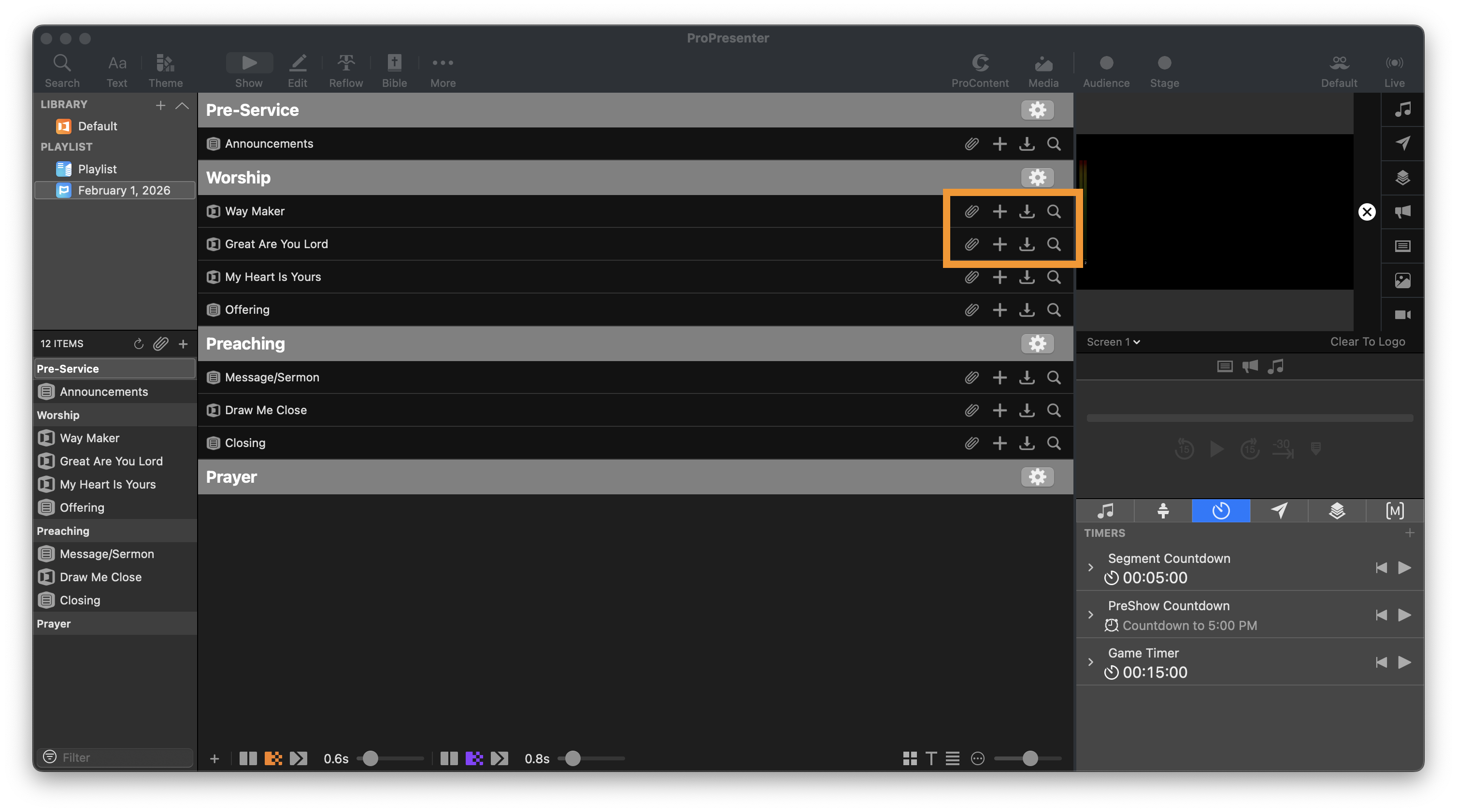 Planning Center is an integral part of a lot of church’s weekly workflow and ProPresenter can do a few things with the Planning Center Services Application.
