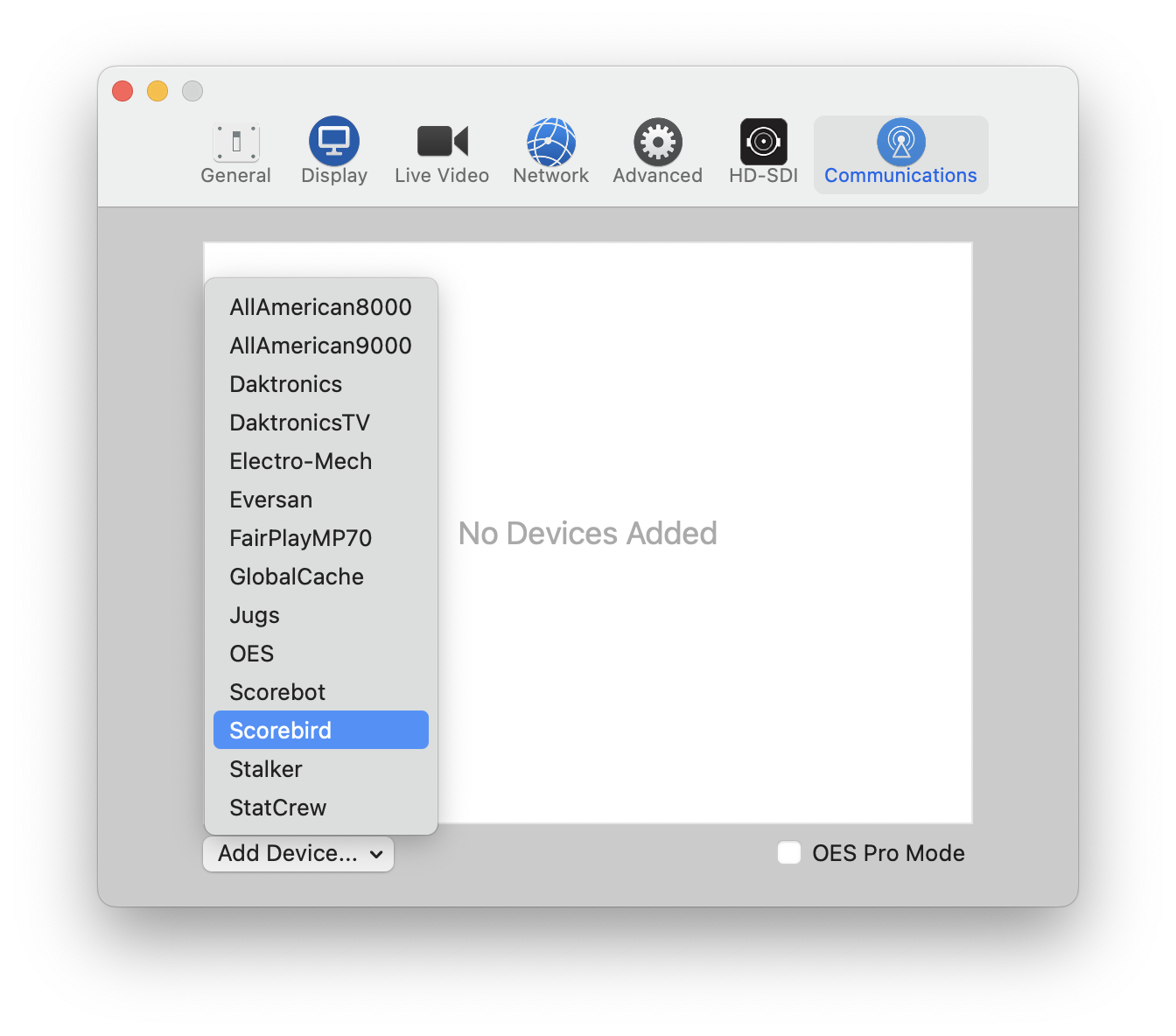 - Click Add Device, then choose Scorebird from the list of available devices.